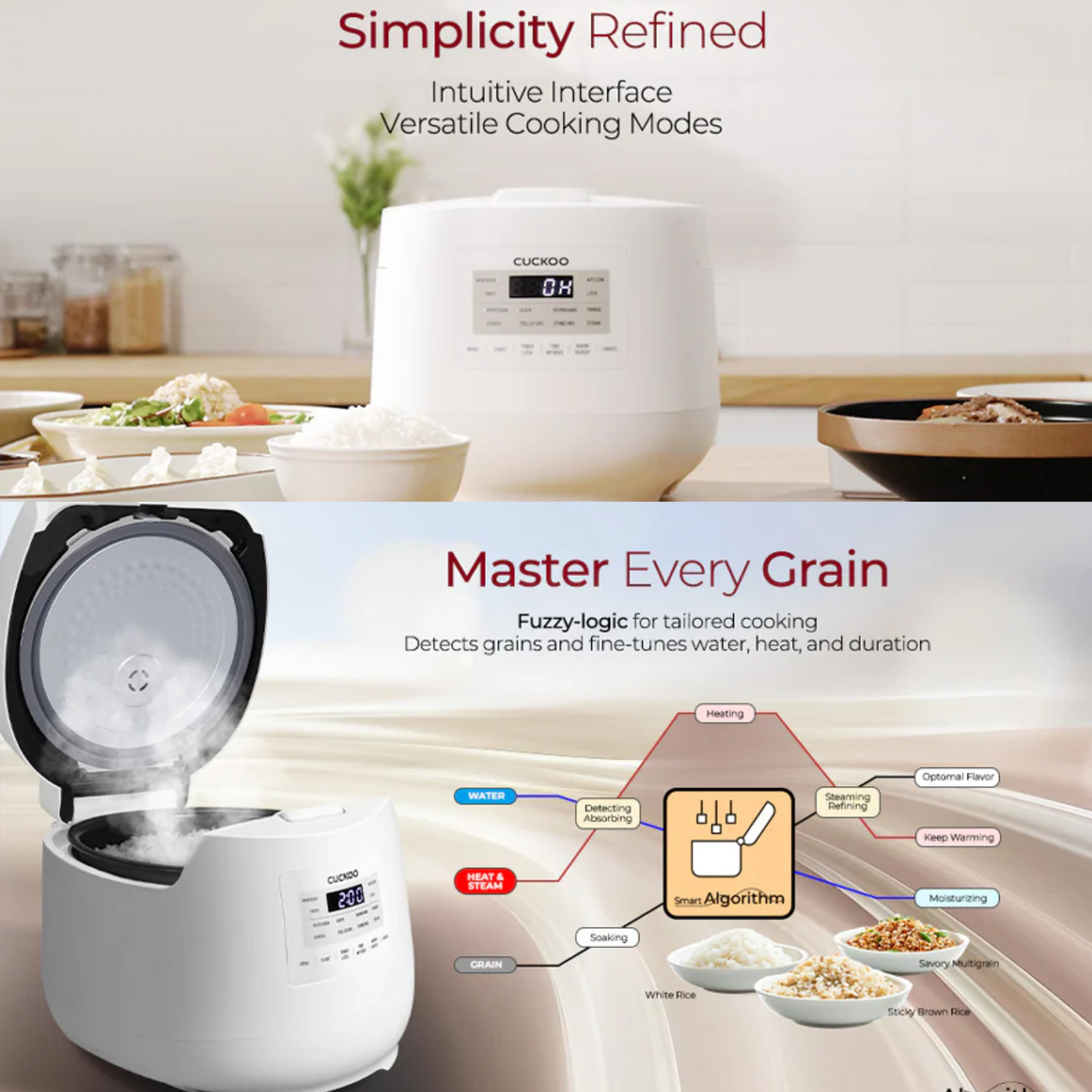 Intelligenz trifft Geschmack: Die Fuzzy-Logic-Technologie reguliert Temperatur und Kochzeit automatisch – für Reis, der nie matschig oder angebrannt ist, sondern immer perfekt gegar