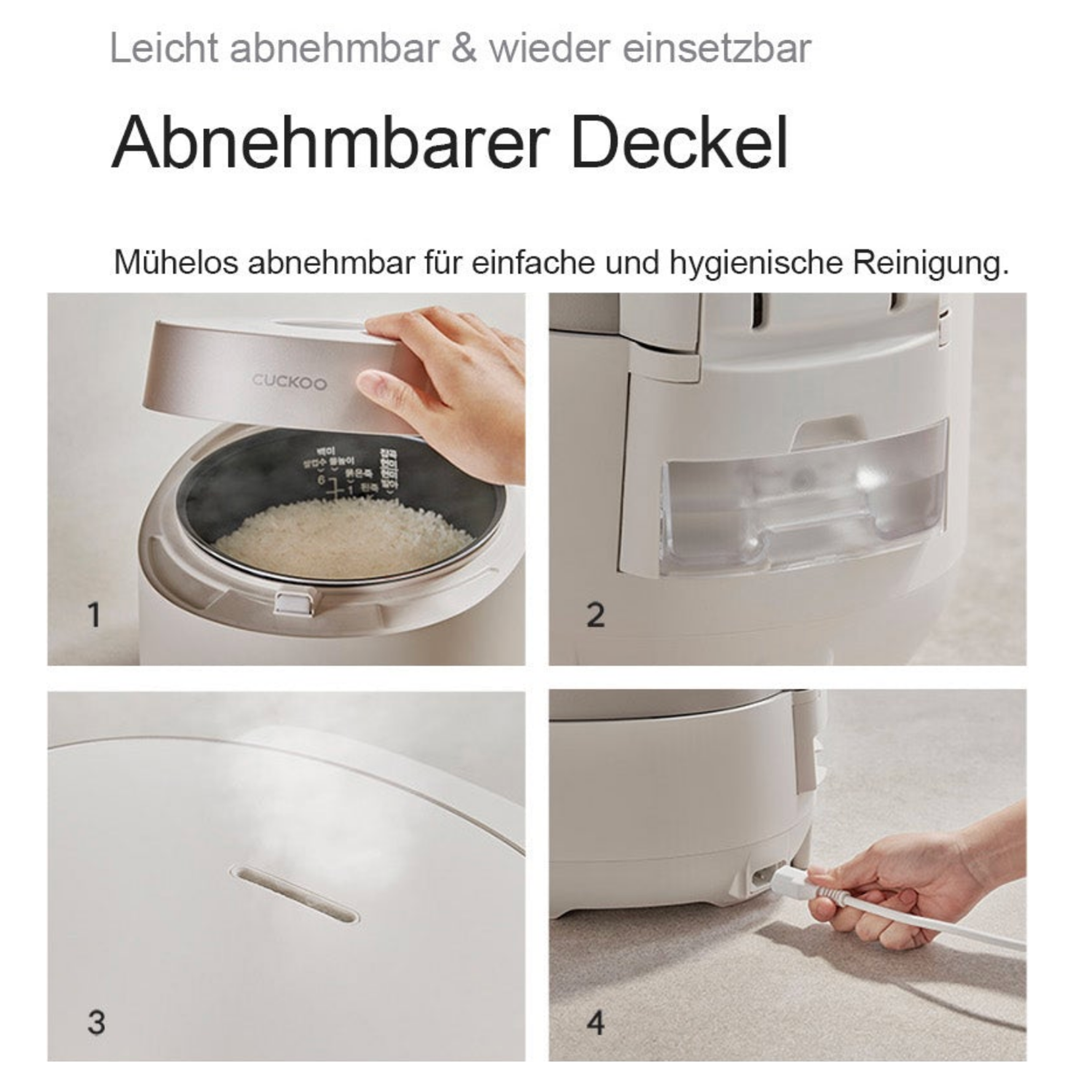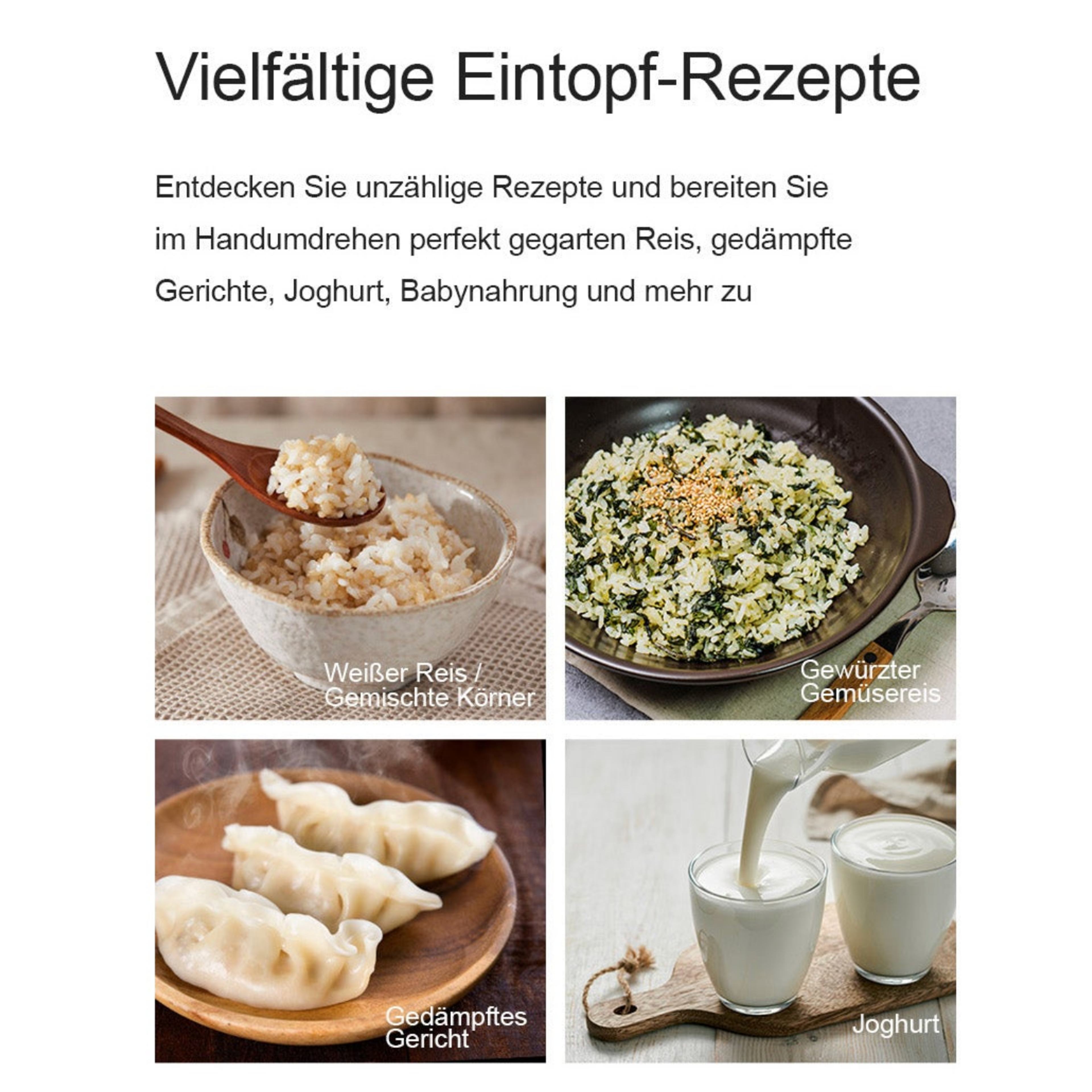 Cuckoo CR-0685FW – Ihr smarter Küchenbegleiter für gesunden GenussEinfachheit trifft auf Vielfalt.Im hektischen Alltag wünschen wir uns Mahlzeiten, die gesund, lecker und einfach zuzubereiten sind. Oft scheitert dies an der Zeit oder den vielen verschiedenen Geräten, die man dafür benötigt. Der Joghurtbereiter verstaubt im Schrank, der Dampfgarer ist zu sperrig. Was wäre, wenn ein einziges, kompaktes Gerät all diese Aufgaben übernehmen könnte?Der CUCKOO CR-0685FW ist die Antwort.Ausgestattet mit der intelligenten Fuzzy-Logic-Technologie, denkt dieser Reiskocher mit. Er reguliert die Temperatur präzise, sodass Ihr Reis immer punktgenau gelingt – nicht zu hart, nicht zu matschig, sondern einfach perfekt. Aber seine Talente gehen weit über das Reiskochen hinaus.Ein Multitalent für die ganze Familie.Haben Sie kleine Kinder? Der spezielle Babybrei-Modus (Baby Food) nimmt Ihnen die Arbeit ab und zaubert nahrhafte Mahlzeiten für die Kleinsten. Achten Sie auf Ihre Gesundheit? Nutzen Sie die Joghurt-Funktion, um frischen, zusatzstofffreien Joghurt zu Hause herzustellen, oder die GABA-Funktion, um braunen Reis zu aktivieren und seine Nährstoffaufnahme zu maximieren.Zeit sparen, Hygiene bewahren.Wenn es schnell gehen muss, sorgt der Turbo-Modus dafür, dass weißer Reis in kürzester Zeit servierbereit ist. Nach dem Kochen übernimmt das Gerät sogar die Reinigung: Mit der Auto-Clean-Funktion wird das Innere des Kochers auf Knopfdruck mit heißem Dampf sterilisiert – für maximale Hygiene ohne Aufwand.Design, das in Ihr Leben passt.Der CR-0685FW überzeugt durch sein klares, weißes Design, das Frische und Modernität in Ihre Küche bringt. Mit einer Kapazität von 1,08 Litern (6 Tassen) ist er ideal für Singles, Paare und kleine Familien. Er ist kompakt genug, um nicht im Weg zu stehen (330 x 252 x 215 mm), aber leistungsstark genug (880 W), um jede kulinarische Herausforderung zu meistern.Der CUCKOO CR-0685FW beweist, dass man kein Profikoch sein muss, um vielfältig und gesund zu essen. Er ist Ihr verlässlicher Partner für jeden Tag.