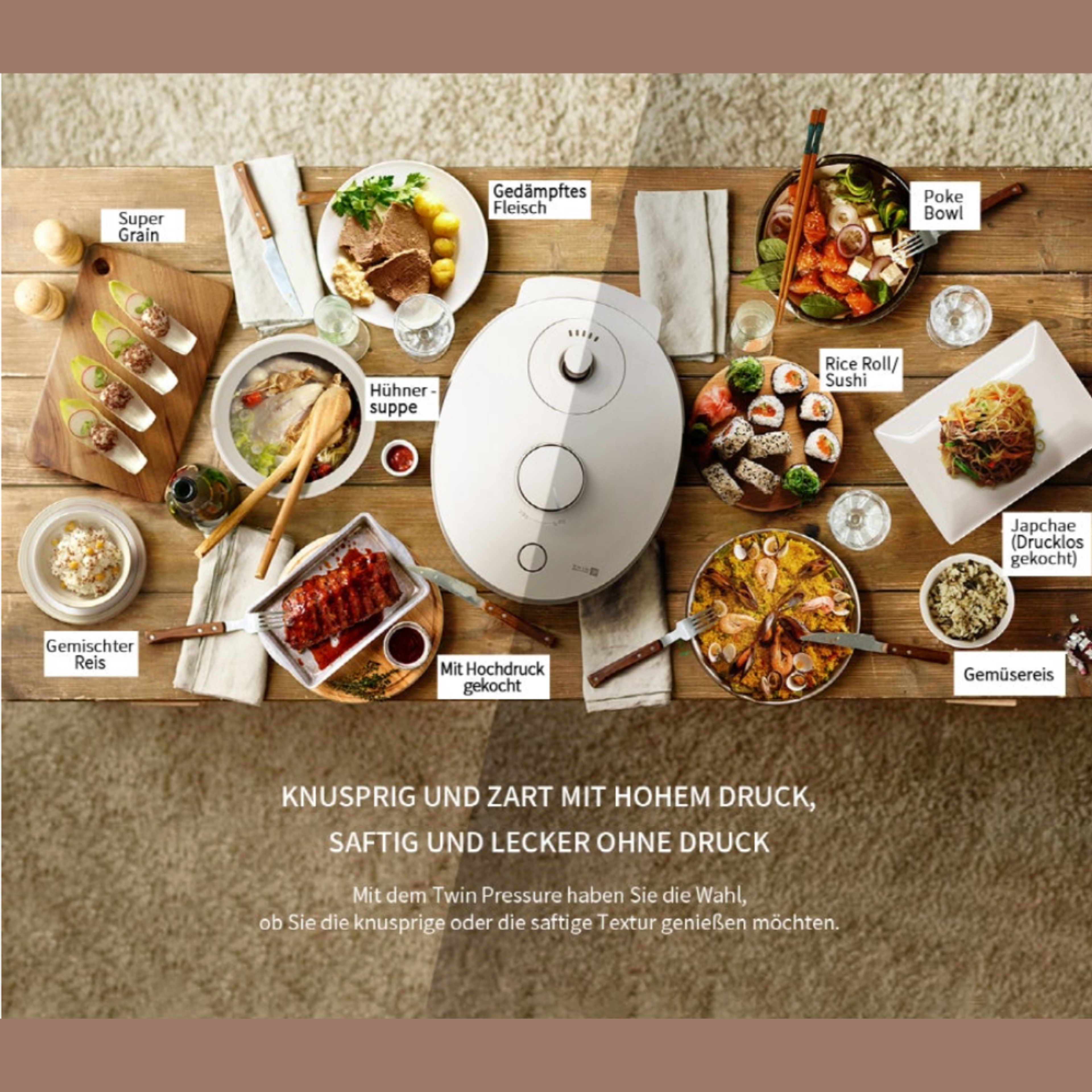 Für ein authentisches koreanisches Abendessen braucht es eine klebrige, leicht süßliche Textur, wie sie nur unter hohem Druck entsteht. Für eine gesunde Lunch-Bowl mit Gemüse, Fisch oder Tofu hingegen wünscht man sich lockere, körnige Frische. Bisher bedeutete das oft einen Kompromiss – oder sogar zwei unterschiedliche Geräte.