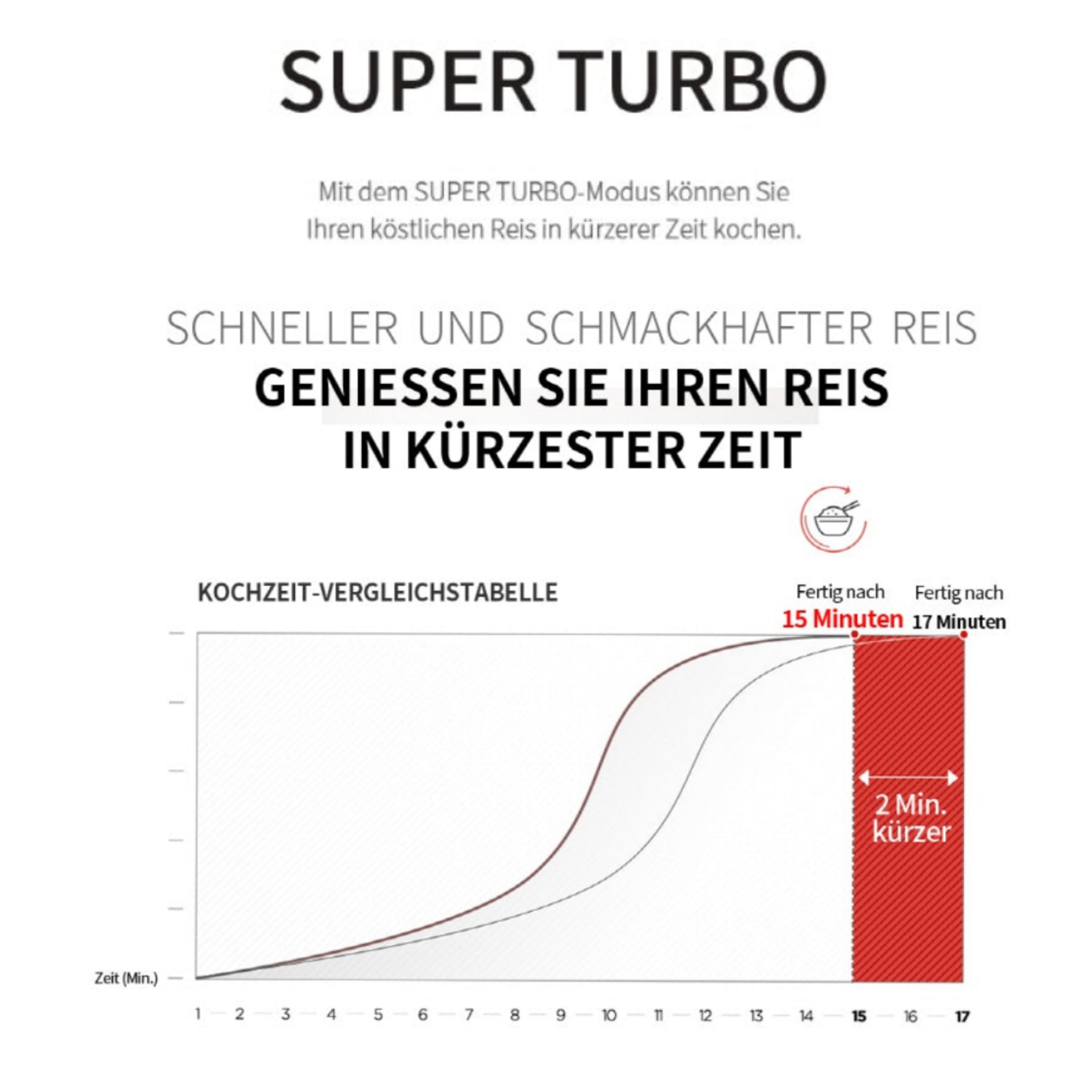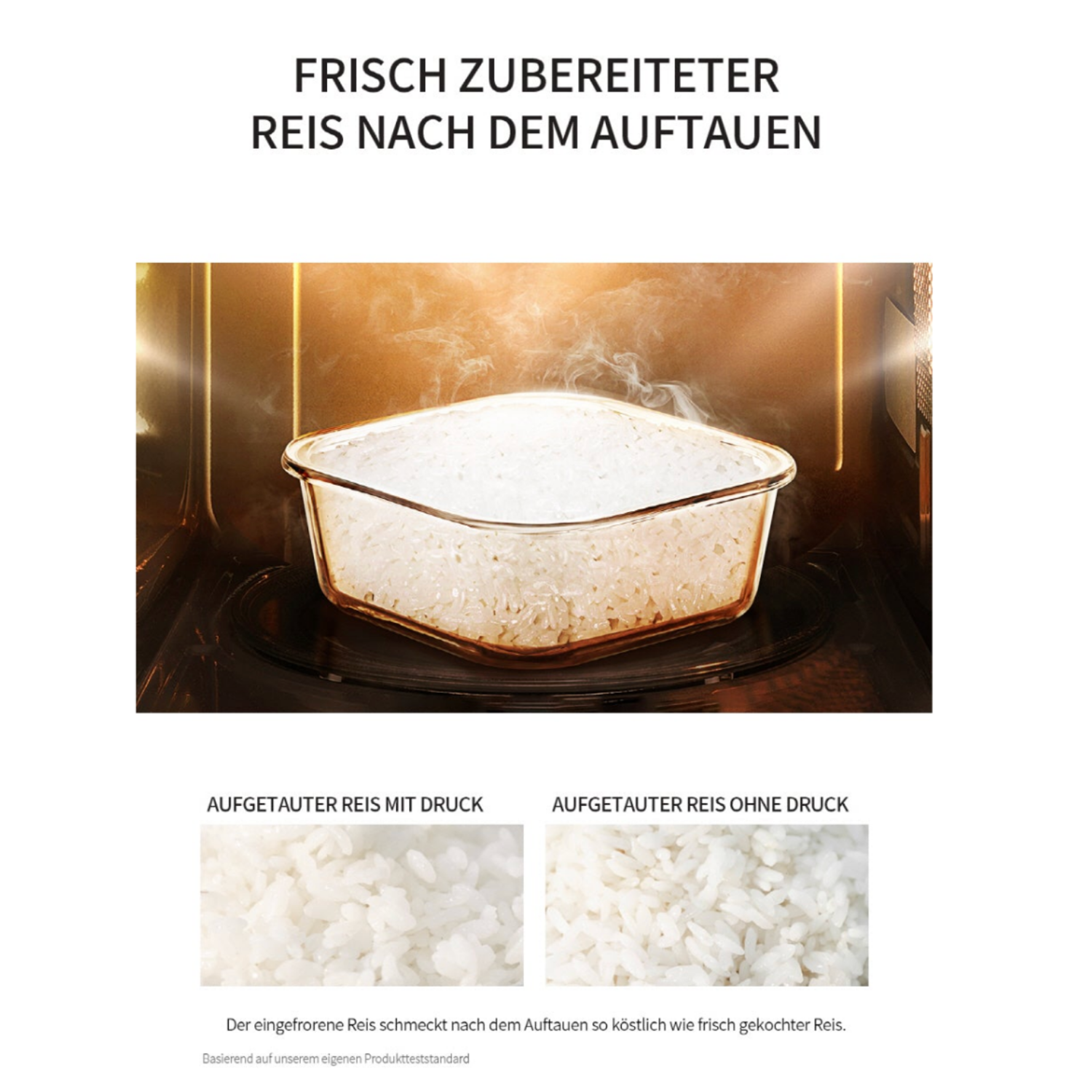 Ultra-Hochdruck für klebrigen, süßlichen Reis oder druckloses Garen für lockere Körner – perfekt für Bowls, Sushi oder Bratreis.