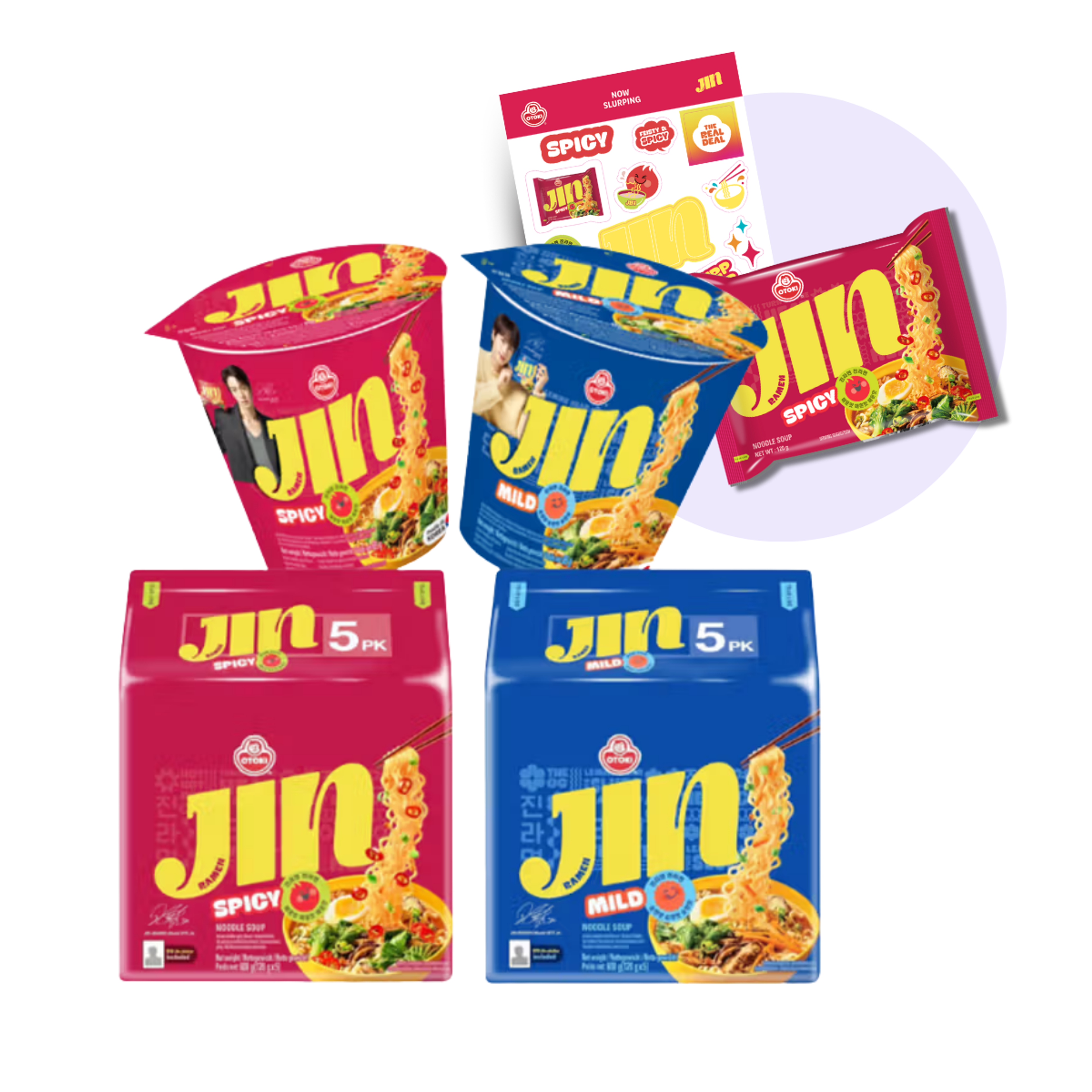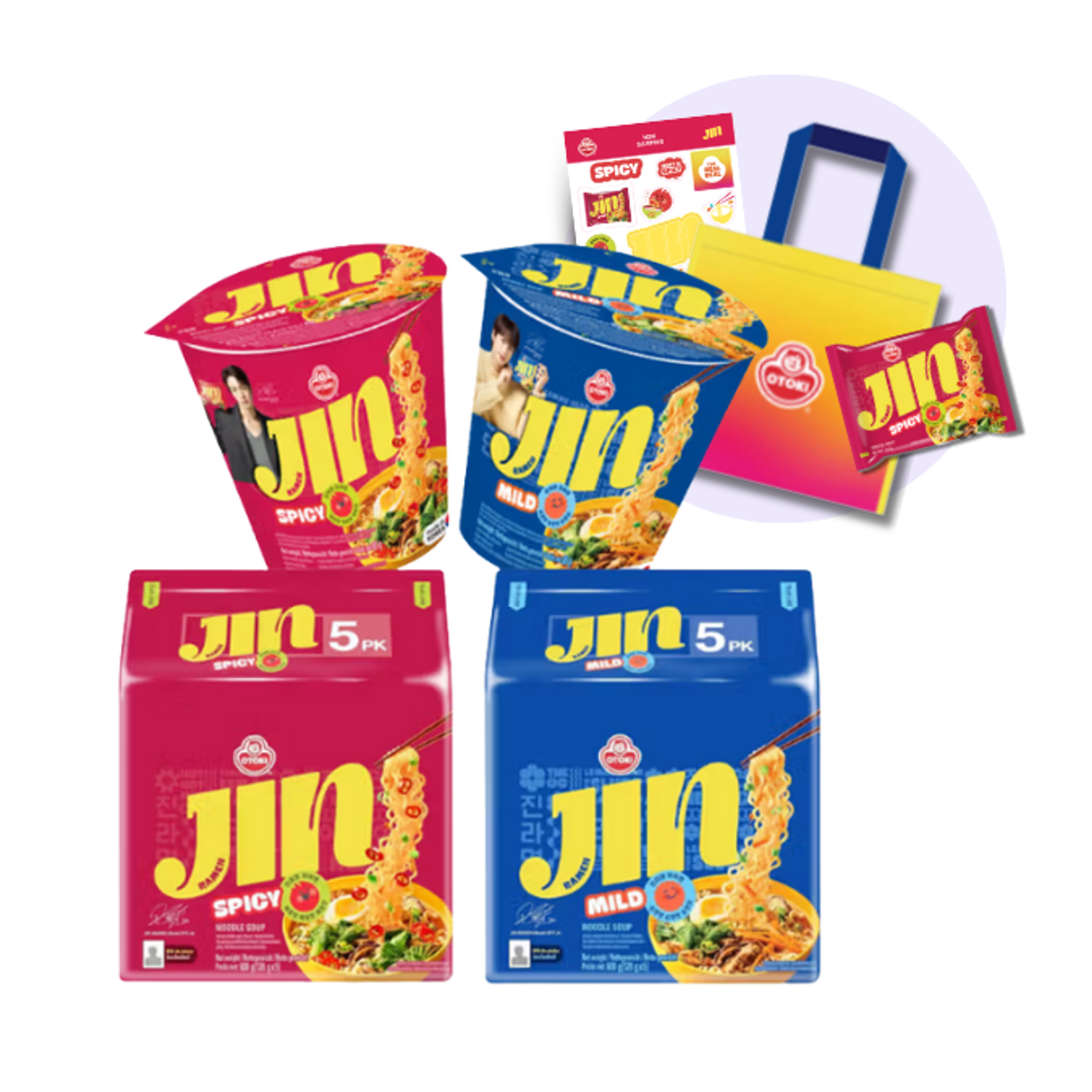 Das OTOKI JIN RAMEN Bundle Set vereint alles, was Fans koreanischer Küche und BTS lieben: würzige & milde Ramyeon, praktische Mini-Cups und exklusive BTS JIN-Sticker in limitierter Auflage!