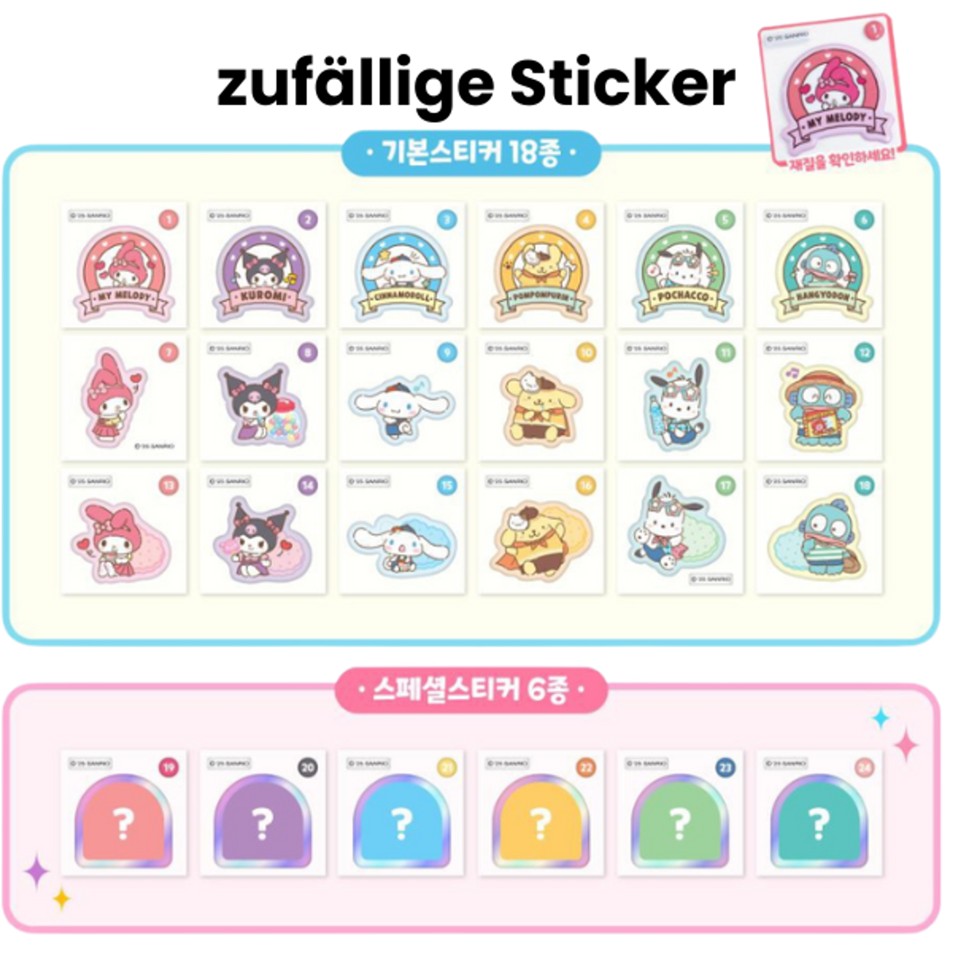 Mit Sammelspaß: Jede Packung enthält einen zufälligen Sanrio-Sticker – sammle alle 24 Designs (inkl. 6 Special-Sticker)!