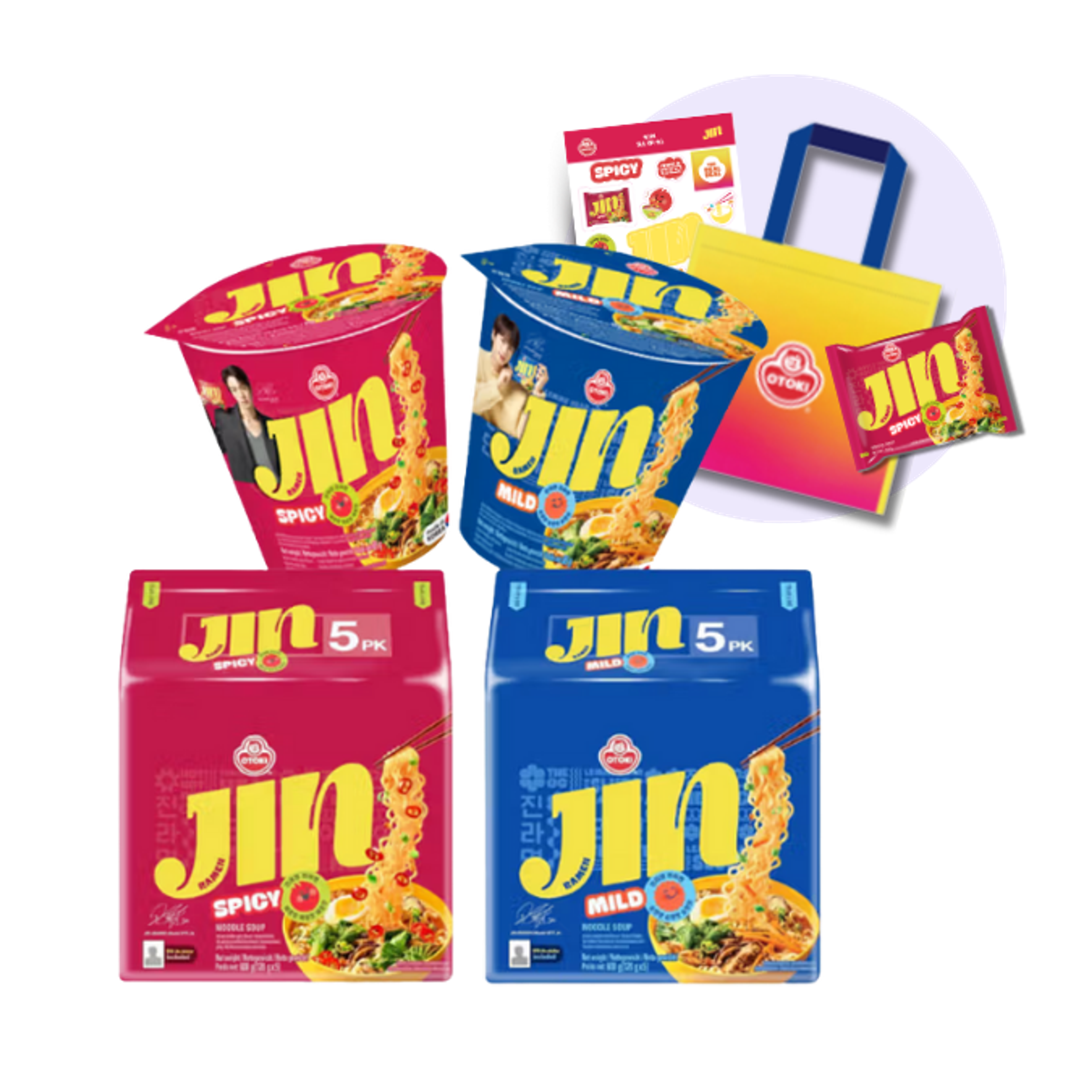 Dieses 5er-Pack bringt dir nicht nur fünf Portionen wärmender, mild-würziger Nudelsuppe, sondern auch einen besonderen Fan-Bonus: In jeder Packung findest du einen von vier verschiedenen Jin-Stickern – zufällig beigefügt und exklusiv!