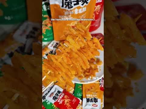 Die Szechuan-Würzung überzeugt mit einer tiefen, würzigen Schärfe und aromatischer Komplexität – intensiv, aber ausgewogen. Die leicht elastische, bissfeste Textur, die an Oktopus oder Tintenfisch erinnert, sorgt für ein besonderes Mundgefühl und hebt diesen Snack klar von klassischen Chips oder Crackern ab.