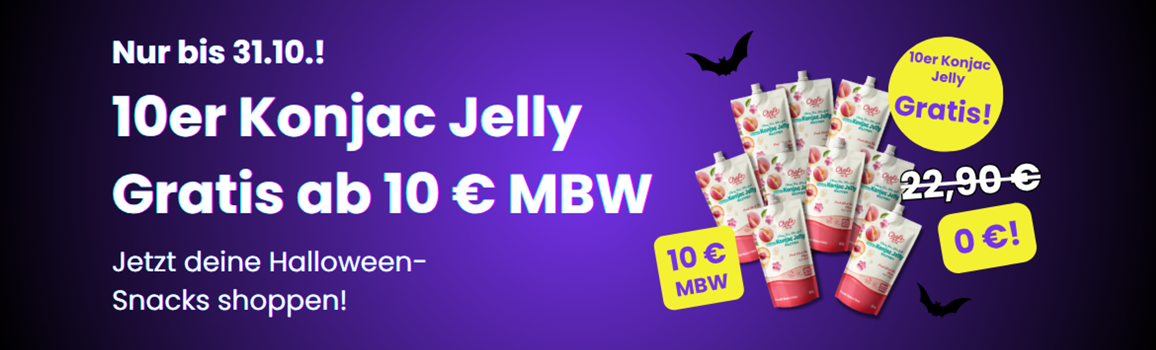 Ab 10 € Einkaufswert schenken wir dir ein 10er-Pack Konjac Jelly (Wert: 22,90 €). Nur bis 31.10.! ⏰